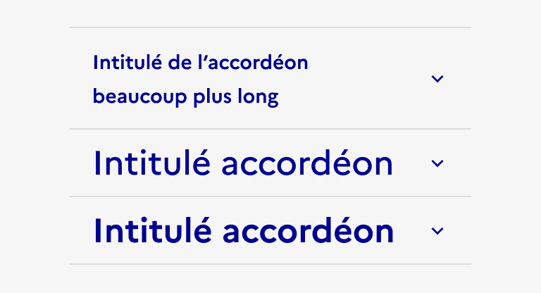 Utiliser uniquement la taille de typographie prévue pour l’en-tête des accordéons.