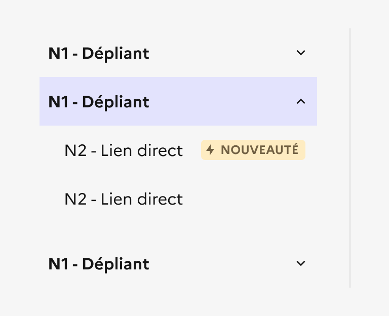 Placer un badge au sein d’un élément de navigation, par exemple le menu latéral, pour apporter des précisions.