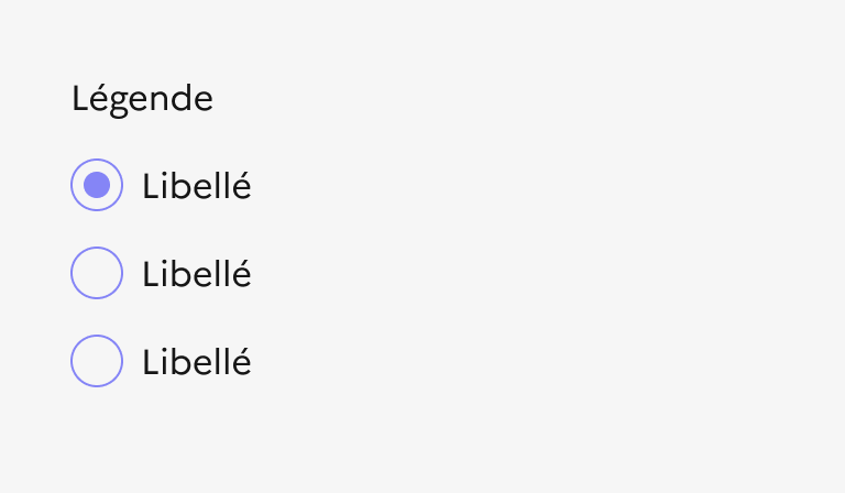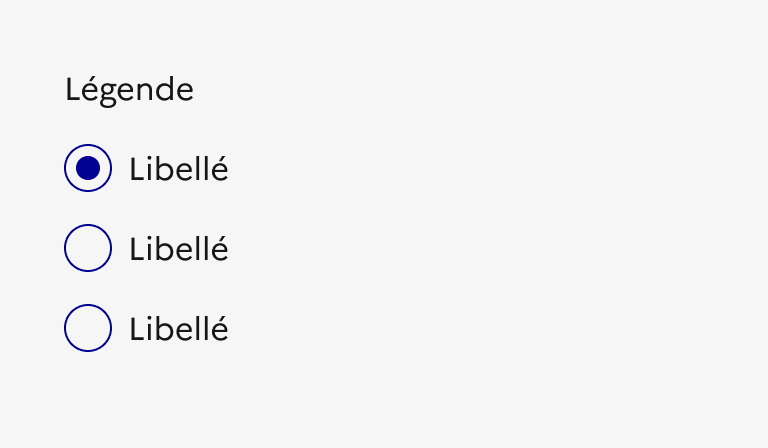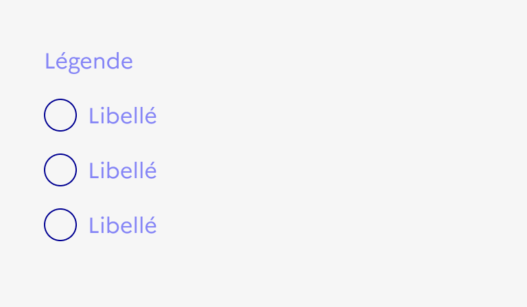 - Une légende, décrivant le contexte du groupe de boutons radio — Obligatoire
