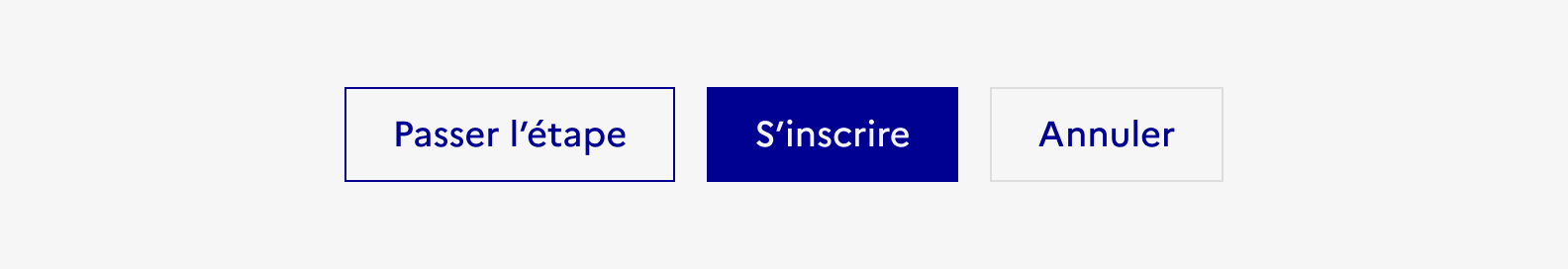 - Positionner le bouton primaire avant les boutons secondaires ou tertiaires quand le groupe est ferré à gauche ou centré.