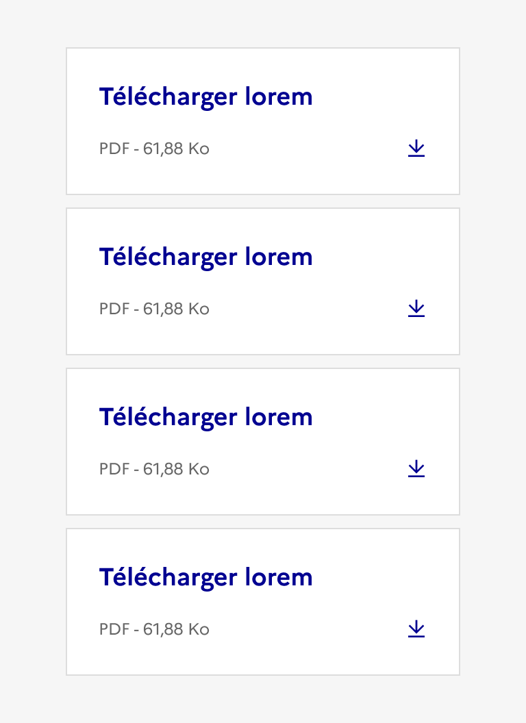- Le titre de la carte de téléchargement reprend le nom du fichier et doit systématiquement être précédé de la mention “Télécharger”. Préciser la langue du document dans le libellé si elle est différente de celle de la page courante.