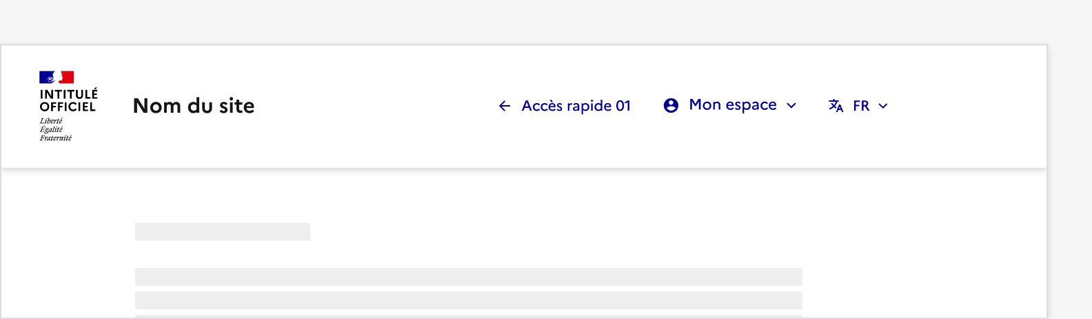 - Utiliser l’en-tête connectée uniquement si la place disponible permet d’accueillir le bouton du menu déroulant. Il est recommandé de ne pas la cumuler avec un grand nombre de liens d’accès rapide ou en présence du bouton des paramètres d’affichage.