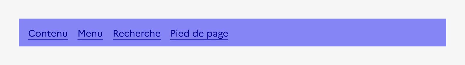 La largeur des liens d’évitement s’adapte à leur contenu, tout en étant dépendante de la taille du conteneur principal de la page.