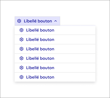 - Considérer que le libellé du déclencheur du menu déroulant ne change pas au clic ou à l’interaction avec son contenu, à la différence des listes déroulantes par exemple. Il peut ainsi accueillir des liens, des boutons ou du contenu personnalisé.