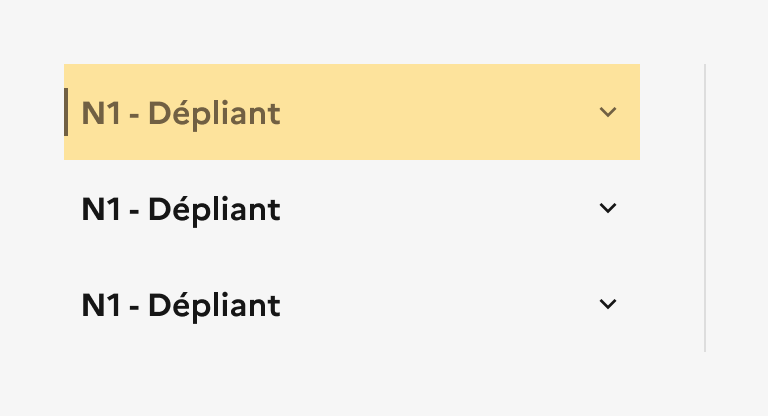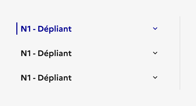 L’état au clic correspond au comportement constaté par l’usager une fois une section du menu latéral ouverte, après avoir cliqué sur le premier niveau de navigation.