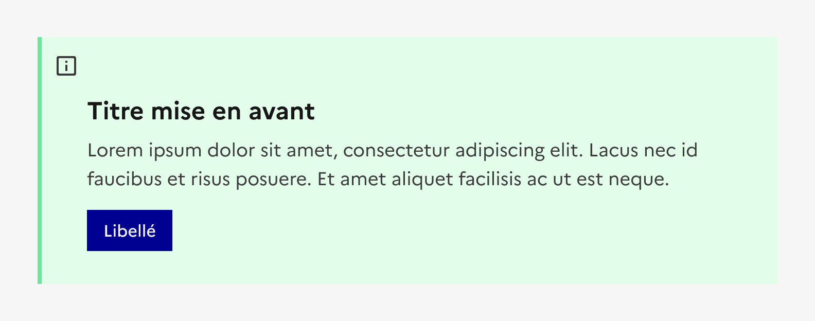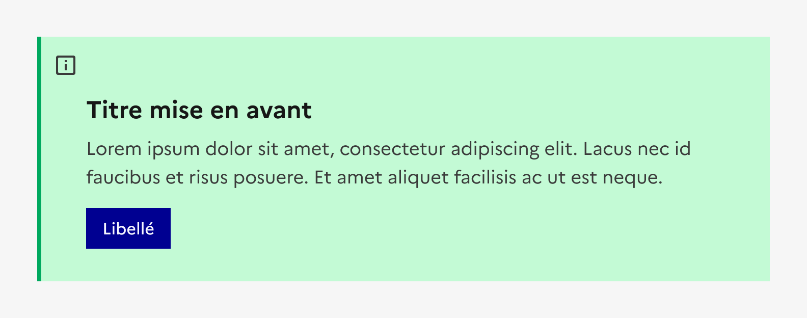 Les éléments fond et bordure de la mise en avant sont personnalisables et peuvent utiliser l’ensemble les couleurs illustratives.
